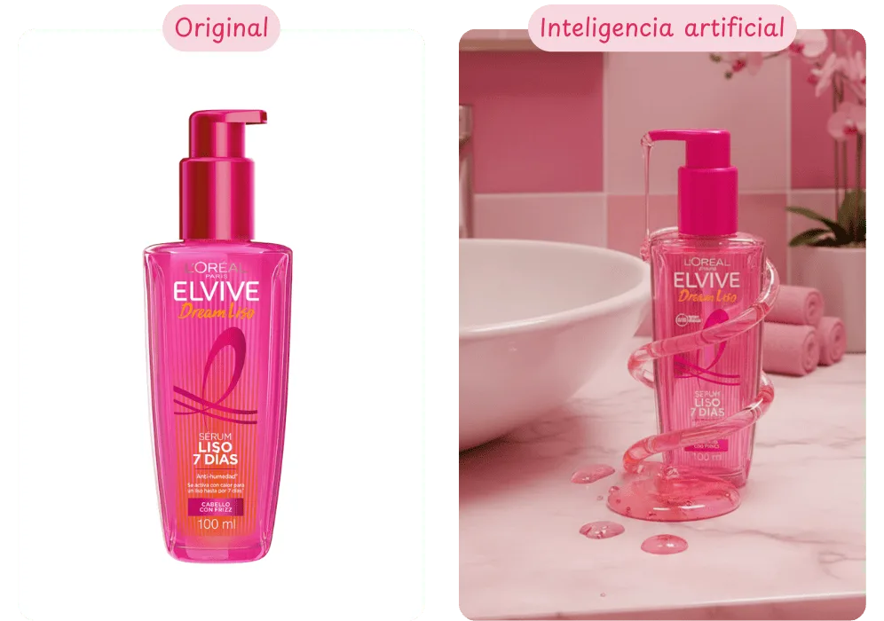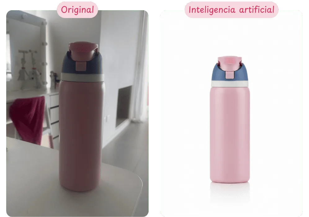 - Edición con IA: fondo, color, textura, luz y detalles.