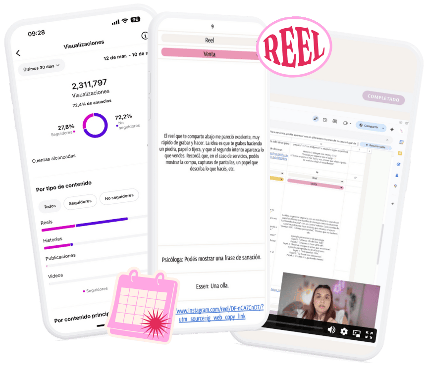Acá tenés guías, calendarios, y herramientas que yo misma uso, para que el contenido sea más fácil de crear, de menos estrés, y con genere resultados reales.